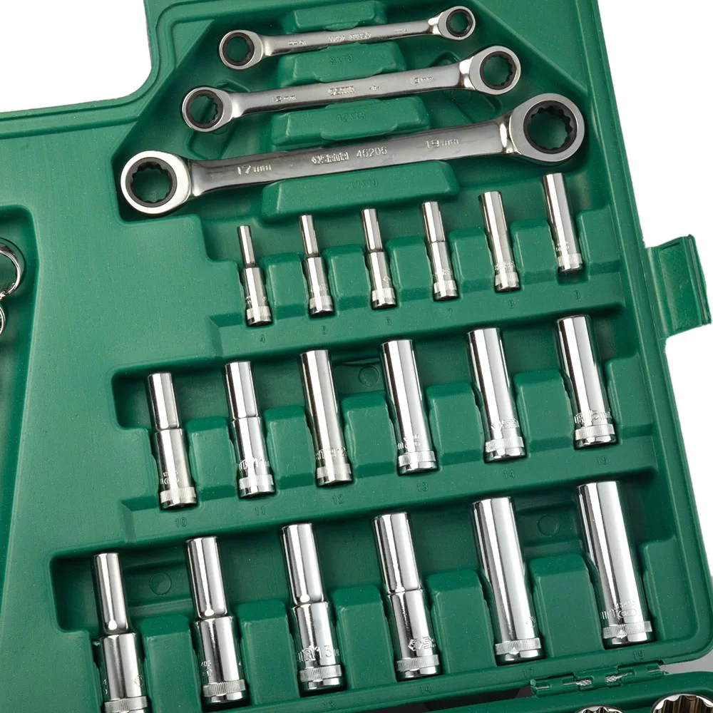 JUEGO HERRAMIENTAS CUBOS, LLAVES, RATCH 150PZ SATA (ST09510PSJ) – 0010215