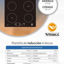 PLANTILLA ELECTRICA DE INDUCCION 4 DISCOS (PIV-4D) VEGGA – 0010427