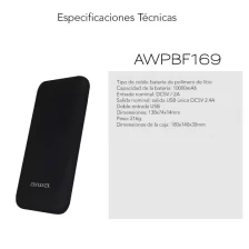 CARGADOR PORTATIL 10.000Mah 2USB DC5V 2.1A (AW-PBF169) AIWA – 0019144